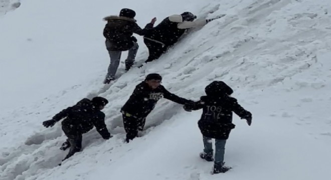 İlçe merkezinde öğle saatlerinde başlayan ve kısa sürede etkisini artıran kar yağışı, hayatı olumsuz etkilese de çocukların eğlencesi oldu. Tatilin tadını çıkarmak isteyen bir grup çocuk, mahalle yakınlarındaki karlı yamaçlara çıkarak kendi imkanlarıyla oluşturdukları parkurda doyasıya eğlendi.
