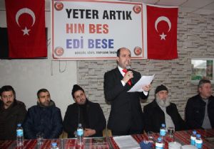 “Bu gemi su aldığında hepimiz boğulacağız. Allah rızası için, devletimize, ülkemize, milletimize sahip çıkalım. Burası İslam’ın son kalesi ve biz biriz, beraberiz, kardeşiz. Ümmetin son kalesi olan bu topraklarda, ay yıldızlı bayrağımıza sahip çıkarak, ezanımızı susturmayarak, çocuklarımızın geleceğine sahip çıkmalıyız. Emin olun ki bugün içinize akıttığımız ve teröre karşı dile getirmediğiniz her söz, yarın bir kurşun olup çoluk çocuğumuza geri dönecektir. İnşallah bizim bugün burada toplanmamız, bölge için bir milat olacak. Bizler, Doğu ve Güneydoğu’nun bütün illerinde bu faaliyetleri yapacağız.”