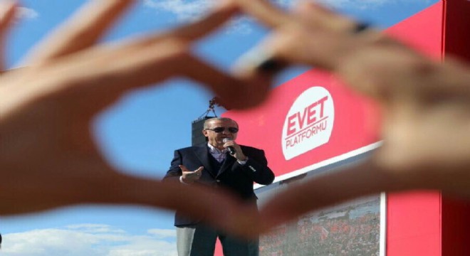 Cumhurbaşkanı Recep Tayyip Erdoğan, 16 Nisan’da yapılacak referandum öncesi İzmir Gündoğdu Meydanı’nda düzenlenen mitingde İzmirlilerle buluştu. Yaklaşık 200 bin kişinin Türk bayrakları ve ‘Evet’ flamaları ile meydana akın ederken, denizden de 300 tekne mitinge destek verdi. Mitinge Ekonomi Bakanı Nihat Zeybekci, Orman ve Su İşleri Bakanı Veysel Eroğlu, Kalkınma Bakanı Lütfi Elvan, AK Parti Genel Başkan Yardımcısı Nükhet Hotar, AK Parti İl Başkanı Bülent Delican ve AK Parti’li milletvekilleri de katıldı.