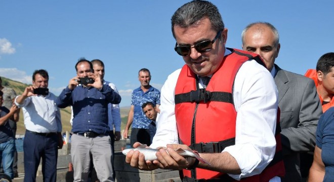Kayıklarla balık üretim tesislerine giden Vali Okay Memiş, Erzurum’da üretilen balığın Japonya’ya pazarında yer alacağını ifade etti. Baraj gölünde oluşturulan tesislerin bulunduğu yere kadar gidip balıklara yem atan Vali Okay Memiş, “Erzurum rakımından ve bulunduğu topografyadan dolayı balık üretiminin devam ettiği ender illerden biri. Önümüzdeki günlerde Erzurum'dan Japonya'ya balık ihraç edilecek. Sadece Kuzgun Barajında bin 500 tonluk bir kapasitemiz var. Erzurum'da yaklaşık olarak 2 bin tonluk üretim kapasitesi ile hem kendi şehrimizdeki hem de Türkiye'deki balık tüketiminde söz sahibi olduğumuz gibi Japonya'ya dahi buradaki çiftliklerden balık ihraç edilecek. Emeği geçen herkese çok teşekkür ediyorum” şeklinde konuştu.
