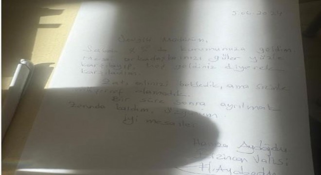 Erzincan Valisi Hamza Aydoğdu’nun, mesaiye geç giden kurum müdürüne iletilmek için bıraktığı mektuptan okuyanlar adeta ders çıkardı.