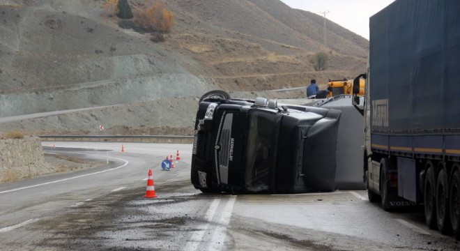 Erzincan’da viraja kontrolsüz giren bakır yüklü tır, rüzgârında etkisiyle devrildi.