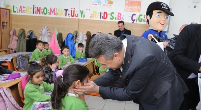Erzurum İl Emniyet Müdürüm Kadir Yırtar, ziyaret ettiği TOKİ İlköğretim Okulu’nda çocuklara hediye verdi, şakalaştı ve onlarla sohbet etti.