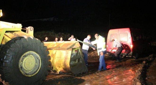 Hayri Polat yönetimindeki minibüs ise bir anda sel sularının içinde kaldı. İş makinesi yardımı ile minibüs çekilerek kurtarıldı.