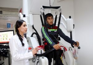 Erzurum Bölge Eğitim ve Araştırma Hastanesi Fizik Tedavi Bölümü’ndeki yürüme robotu 19 yaşındaki felç hastası Hüseyin Askar’ın umudu oldu.