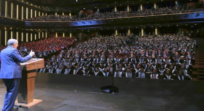 Hâkim ve savcı adaylarına, 81 ili ve 79 milyon vatandaşıyla bu ülkeyi çok sevmeleri tavsiyesinde bulunan Cumhurbaşkanı Erdoğan, Türk milletinin, kendisine hizmet eden herkesi, özellikle de adalet teşkilatı mensuplarını adeta başının üstünde taşıdığını söyledi. 81 ilin hepsini tek tek birkaç kez gezip dolaştığını hatırlatan Cumhurbaşkanı Erdoğan, “Gördüm ki, bu alicenap millet her şeyin en iyisini, en güzelini, en kalitelisini hak ediyor. Bu millet büyük bir millet, bu millet gerçekten aziz bir millet, her türlü hizmete layık bir millet. İşte o gece tankların altına kendini atarken bu millet bunu gösterdi. Biz bu millete bu hizmeti vermeyeceğiz de kime vereceğiz? Bu millet o gece şahadete yürüdü. Bu millet o gece geleceğini teminat altına almak için yürüdü ve 29 gece demokrasi nöbetleri tuttu. Sabahlara kadar hiçbir şey beklemeksizin, ne rütbe beklediler, ne makam beklediler, ne para beklediler, ne pul beklediler. Sadece, evet, ikinci kurtuluş mücadelesini başarıyla sonuçlandırmayı beklediler. Sizlerin de kendi alanınızda milletimize en iyi hizmeti vereceğinize ben yürekten inanıyorum” şeklinde konuştu.