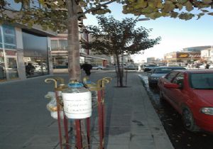 Erzurum'un sokak başlarında ağaç ve demir levhalara asılan mavi kapak kampanya kutuları her engelli için bir akülü araba ifade ediyor.