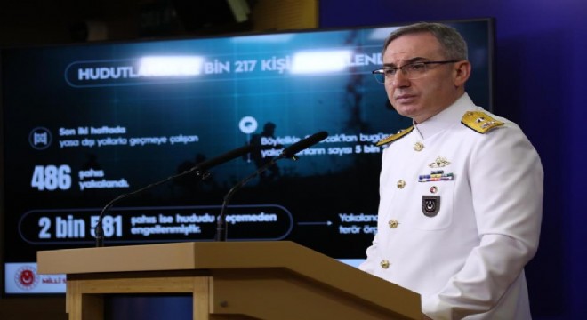 Sınırlarda etkin ve dinamik tedbirlerin alındığına dikkati çeken Tuğamiral Aktürk, “Son iki haftada yasa dışı yollarla geçmeye çalışan 486 şahıs yakalanmıştır. 2 bin 581 şahıs ise hududu geçemeden engellenmiştir. Yakalanan şahıslardan 16'sı terör örgütü mensubudur. Böylelikle, 1 Ocak'tan bugüne kadar hudutlarımızdan yasa dışı yollarla geçmeye çalışırken yakalananların sayısı 5 bin 215'e yükselmiştir. Hududu geçemeden engellenen kişi sayısı da 62 bin 217 olmuştur” şeklinde konuştu.