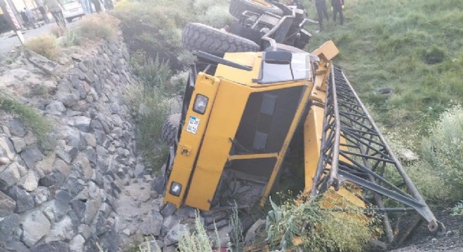 Erzurum’da devrilmekte olan vinçten kurtulmaya çalışan operatör aracın altında kalarak hayatını kaybetti.