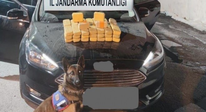Narkotik arama köpeğiyle araçta yapılan aramada, paketler halinde zulalanmış 22 kilo 500 gram eroin ele geçirildi. Gözaltına alınan şüpheli, jandarmadaki işlemlerin ardından çıkarıldığı mahkeme tarafından tutukladı.