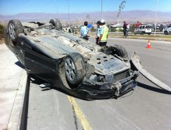 ERZURUM (İHA) - Erzurum'da Palandöken Dağı'ndan aşağı inerken sürücünün direksiyon hakimiyetini kaybetmesi üzerine defalarca takla atan otomobilde bulunan 18-20 yaş arasındaki 3 genç, ölümden döndü.