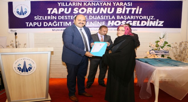Konuşmaları ardından Selçuklu Mahalle Muhtarı Şinasi Terzioğlu, 30 yıla aşkın tapu sorununa çözüm üreten Başkan Orhan’a mahalle sakinleri adına bir plaket takdim etti. Daha sonra hazırlanan tapular, Başkan Orhan, Yardımcısı Akdaş ve muhtarlar tarafından katılımcılara dağıtıldı.