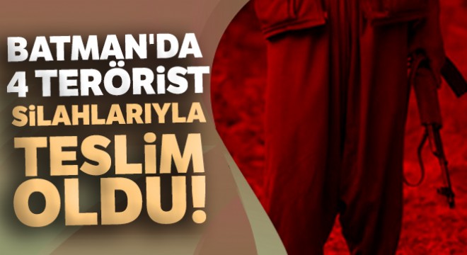 İçişleri Bakanlığı, Batman'da 4 teröristin silahları ile birlikte teslim olduğunu açıkladı. Teröristlerden birinin, 2018 yılında Mardin’de 8 jandarmanın şehit olduğu olayın faili olduğu belirtildi.