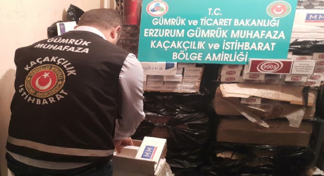 Erzurum Gümrük Muhafaza Kaçakçılık ve İstihbarat Bölge Amirliğine gelen ihbarlar neticesinde Yakutiye İlçesi Şükrüpaşa Mahallesinde bulunan bir evde yapılan aramada üzerinde Türkçe ibareler ve TAPDK bandrolü bulunmayan piyasa değeri 421 bin lira olan 52 bin 907 adet kaçak sigara ele geçirildi.