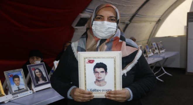 Çocuklarının terör örgütü PKK mensupları tarafından dağa kaçırıldığı iddiasıyla HDP Diyarbakır İl Başkanlığı önünde oturma eylemi başlatan ailelerin evlat nöbeti 835'inci gününe girerken, oğlu terör örgütü PKK tarafından zorla dağa kaçırılan anne Sultan Göger, oğlunun HDP tarafından dağa gönderildiğini iddia ederek evladını istedi.