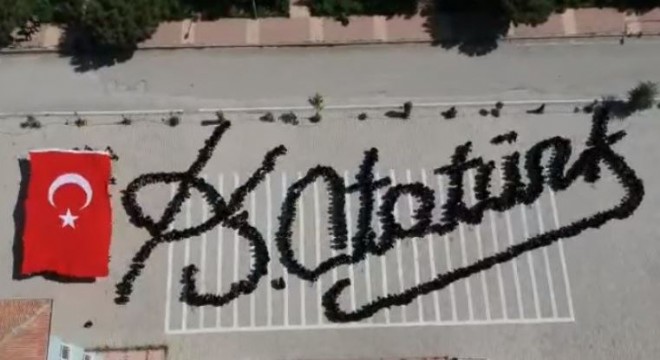 Öğrencilerin hazırladığı Atatürk'ün imzasının oluşturulduğu görüntüler izleyenler tarafından beğeni toplarken, sosyal medyada da büyük ilgi gördü.
