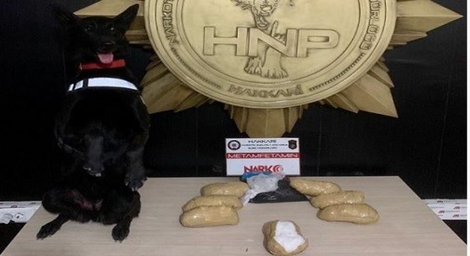 Yüksekova ilçesindeki bir ikamette yapılan aramada 8 kilo 800 metamfetamin ele geçirildi.