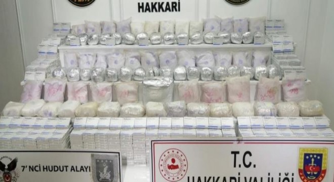 Hakkari Valiliğinden yapılan açıklamada, İl Jandarma Komutanlığı görevlileri tarafından 3. Piyade Tümen Komutanlığı ile koordineli olarak yürütülen çalışmaların aralıksız devam ettiği belirtildi. Açıklamada, “İlimiz Yüksekova ilçesinde yurt içine sokulmaya çalışılan 89 kilogram eroin maddesi ve bin 900 adet kırmızı reçeteye tabi tıbbi ilaç ele geçirilmiştir” denildi.