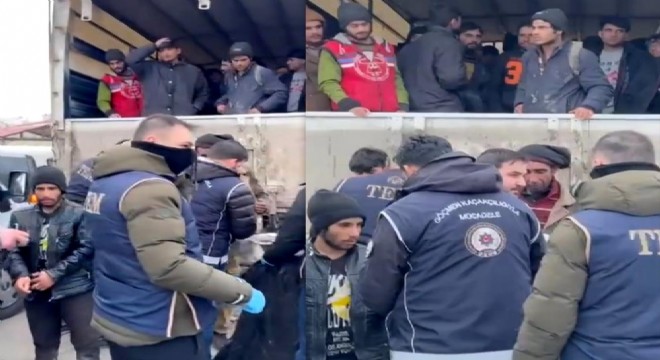 Erzurum - Erzincan kara yolu Tercan uygulama noktasında durdurulan kamyonun kasasından Türkiye’ye yasa dışı yollarla giriş yapan Afganistan uyruklu 99 kaçak göçmen çıktı.