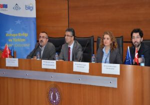 Atatürk Üniversitesi Oditoryormu’nda gerçekleştirilen programda ilk olarak, “Gençler ve Avrupa Birliği” konulu bir panel düzenlendi. Atatürk Üniversitesi Edebiyat Fakültesi, İngiliz Dili ve Edebiyatı Bölümü Öğretim Üyesi Prof. Dr. Kamil Aydın’ın moderatörlüğünü yaptığı panelde, Başkent Üniversitesi Fen Edebiyat Fakültesi Psikoloji Bölümü Öğretim Üyesi Yrd. Doç. Dr. Okan Cem Çırakoğlu, “Kimlikler Konuşur mu?”, Türkiye Odalar ve Borsalar Birliği (TOBB) Ekonomi ve Teknoloji Üniversitesi İktisadi ve İdari Bilimler Fakültesi, Siyaset Bilimi Bölümü Öğretim Üyesi Yrd. Doç. Dr. Başak Yavcan, “Avrupa Birliği’ndeki Türkiye Algısı” ve TOBB Ekonomi ve Teknoloji Üniversitesi İktisadi ve İdari Bilimler Fakültesi, Siyaset Bilimi Bölümü Öğretim Üyesi Yrd. Doç. Dr. Hakan Övünç Ongur, “Avrupalılaşma Kavramı ve Türkiye’nin AB’ye Üyeliği” başlıklı birer sunum yaptılar.
