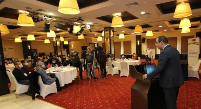 Prof. Dr. Okan Tarık Komesli’de konuşmasında, “Bu konu herkesin gündeminde olan bir konu. Yapılan araştırmalara göre en büyük sorun iklim değişikliği konusudur. Kovid-19 ikinci sıraya düştü, bu kadar önemli bir konu. Yıllardır gelen ve yıllarca da devam edecek bir konu. Günümüzde karbon salınımını durdursak bile, tüm önlemler alınsa bile, bir tane kömür yakmasak bile, iklim değişikliğini yaşayacağız. Bunun kaçışı yoktur. Bizler bunu yalnızca yavaşlatmaya çalışıyoruz. Kaynaklarımız o kadar hor kullanılmaya başlandı ki günde 100 milyon varile yakın petrol kullanıldı, 100 milyonlarca ton fosil veya atık yakıtlar kullanılıyor. Sürekli olarak sularımızı kirletiyoruz. Sürekli iklimini değişmesine sebep oluyoruz. Paris İklim Anlaşması yapıldı, biz de taraf olduk. Sorun, global bir sorun. 1,5 derece ile sınırlandırmaya çalışıyoruz. Bu derecenin çok önemi var” ifadelerini kullandı.