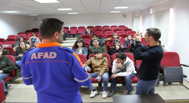 AFAD Erzurum il müdürlüğü, Dede Korkut İşitme Engelliler Ortaokulu öğrencilerine depremden korunma eğitimi verdi.