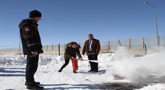 Yaşadığımız çevrede meydana gelebilecek yangınlara karşı müdahale teknikleri, yangın söndürme cihazlarının doğru kullanımı konularının da anlatıldığı eğitimlerde gerekli önlemler alınarak katılımcılara yangın söndürme cihazları ile yangına nasıl müdahale edilmesi gerektiği uygulamalı olarak gösterildi.