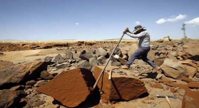 Bitlis'in Ahlat ilçesindeki taş işçileri, Nemrut Dağı eteklerinde çıkardıkları volkanik kaya kütlelerini parçalayarak ekmeklerini kazanmanın mücadelesini veriyor.