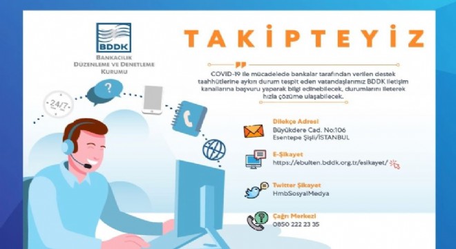 Hazine ve Maliye Bakanı Berat Albayrak, yeni tip korona virüs (Kovid-19) ile mücadelede bankalar tarafından verilen destek taahhütlerine aykırı durum tespit eden vatandaşların, Bankacılık Düzenleme ve Denetleme Kurumu’nun (BDDK) iletişim kanallarına başvuru yaparak, ilgili durumlarına hızlı çözüm bulabileceklerini açıkladı.