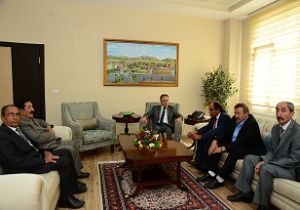 Erzurum Erenler Alevi Bektaşi Kültür Derneği Başkanı Ali Demir ve beraberindeki yönetim kurulu üyeleri Vali Dr. Ahmet Altıparmak'ı makamında ziyaret ettiler.
