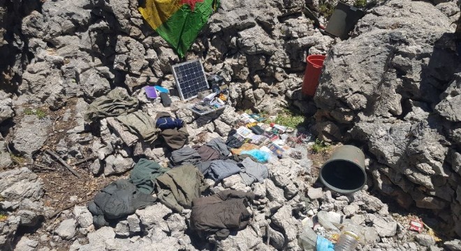 Bidonlarda 1 adet örgüt simgeli bez parçası, 6 adet batarya, 2 adet güneş paneli, 2 adet kablo bağlı pil bloğu, 1 adet radyo, 5 adet not defteri, 12 adet örgütsel kitap, 8 adet el feneri, 400 metre kablo, 1 adet akım ölçer, 1 adet ses kayıt cihazı, 1 adet kuzineli soba, 2 adet kuru akü,1 adet dörtlü ocak,2 çift ayakkabı, 2 adet hafızalı radyo, 1 adet radyo mp3, 1 adet ışıldak, 1 adet akü, 14 adet büyük boy pil, 61 adet küçük pil, 1 adet keser, 1 adet kazma, 1.250 kilogram muhtelif yaşam malzemesi ele geçirildi.