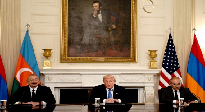 Azerbaycan Cumhurbaşkanı İlham Aliyev, resmi temaslarda bulunmak üzere Amerika Birleşik Devletleri’nin (ABD) başkenti Washington’da, Ermenistan Başbakanı Nikol Paşinyan ve ABD Başkanı Donald Trump ile bir araya geldi. Liderler Başkan Trump ile yaptıkları ikili görüşmelerin ardından, basın açıklaması gerçekleştirmek üzere bir araya geldi.