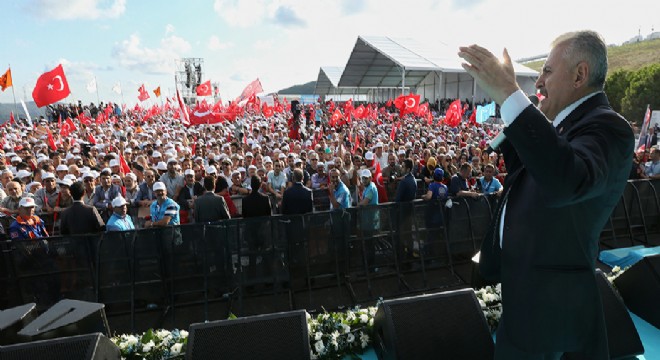 Başbakan Binali Yıldırım, "Bu köprü 3 yılda bitecek.' dedik. 2 yıl sonra gazetenin birinde, 'köprüden geriye 2 tane kule kaldı...' diye başlık atanlar gelsinler İstanbul'un köprüsünü görsünler." dedi.