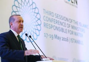 Orman ve Su İşleri Bakanlığı ve TİKA vasıtasıyla Afrika’da pek çok altyapı projesine, yardım faaliyetine ve eğitim çalışmasına imza attıklarını hatırlatan Cumhurbaşkanı Erdoğan, son olarak dünya çapında bir projeyle denizin altından borularla su taşıyarak Kuzey Kıbrıs Türk Cumhuriyeti’nin 50 yıllık içme suyu ve tarımsal su ihtiyacını sağladıklarını söyledi ve şunları ekledi: “Projenin, Müslüman ülkeler arasında iş birliğine önemli bir örnek teşkil ettiğine inanıyorum. İslam İşbirliği Teşkilatı içindeki gelişmiş ülkelerin, gelişmekte olan ve az gelişmiş ülkelere yardım eli uzatması çok önemlidir. Bu destek ve iş birliklerinin özellikle su alanında hayata geçirilmesi, Müslümanlara yapılacak en hayırlı hizmetlerden biri olacaktır. Biri sudur, bir diğeri de elektrik enerjisidir. Bunları başarmamız lazım. Müslümanlar elektrik enerjisi ve su konusunda dayanışma içerisinde olmalı ve bu iki nimetten mahrum olmamalı. Toplantı sonucunda kurulacak olan Su Konseyi’nin bütün İslam coğrafyasında, bu kaynağın doğru kullanılması ile başlayacak kalkınma hamlesine vasıta olmasını temenni ediyorum.”