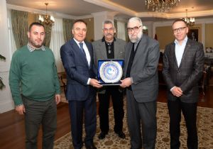 Erzurum’da ilk kez gerçekleştirilen ve iki bayan 3 hattata icazet belgelerinin verildiği tören ile Esma-ül Hüsna sergisinin açılışına katılmak üzere Erzurum’da bulunan Reis-ül Hattatin Hattat Hasan Çelebi beraberindeki diğer hattatlarla birlikte Vali Dr. Ahmet Altıparmak’ı makamında ziyaret etti.