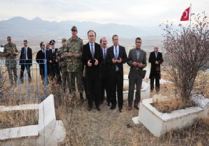 Belde çıkışında bulunan Yavi Mezarlığı içerisindeki şehitliğe de giden Vali Altıparmak ve beraberindekiler 33 şehidin ruhu için Fatiha okudu.