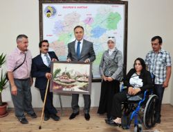 Vali Altıparmak bugün Sakatlar Derneği Erzurum Şube Başkanı Sadullah Efe ve Yönetim Kurulu Üyeleri, Mavi Yolculuk Engelliler Derneği Başkanı Nermin Demir ve Yönetim Kurulu Üyeleri ve Beyaz Ay Derneği Başkanı Ömer Onay ve Yönetim Kurulu Üyelerini makamında kabul etti. Ziyarette dernek başkanı ve yöneticilerinden engelli vatandaşların sıkıntılarını dinleyen Vali Altıparmak, engelliler açısından sıkıntıların her geçen yıl azaldığını ve toplumun bu konuda daha duyarlı hale geldiğini söyledi. Çalışma hayatında özürlülerin daha aktif hale gelmeye başladığına dikkat çeken Vali Altıparmak kamu ve özel sektör eliyle engelli vatandaşların iş sahibi olduğuna dikkat çekerek bunun memnuniyet verici olduğunu ifade etti. Sakatlar Derneği Erzurum Şube Başkanı Sadullah Efe dernek üyeleri tarafından yapılan bir tabloyu Vali Altıparmak’a hediye etti.