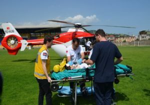 Fatsa Devlet Hastanesi’ne getirilen ve durumu ağır olan 10 yaşındaki Ulaş Karadeniz’in doktorlar sevkine karar verdi. Çocuğun Erzurum’a sevki için hava ambulansı çağrıldı. Fatsa Stadı’na iniş yapan hava ambulansı, Ulaş'ı alarak havalandı.