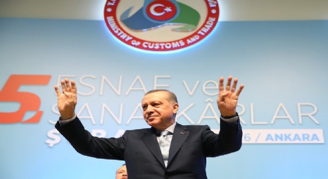 Türk kültüründe esnaf ve sanatkârın; sadece alıp satan, sadece becerisini kazanca dönüştüren kişi olmadığına işaret ederek, “Esnaf ve sanatkâr elbette rızkını çıkartır; ama onunla birlikte tek millet, tek bayrak, tek vatan, tek devlet diyerek ifade ettiğim değerlerin taşıyıcısıdır” diyen cumhurbaşkanı Erdoğan, “Bizim Türkiye Cumhuriyeti Devletinden başka devletimiz yok. Kimse başka hesabın içine girmesin, başka hesabın içerisine giren bunun bedelini ödeyecektir ve ödüyorlar. Sırtını bir yerlere dayayanlar bunların bedelini ödemeye devam edecekler. Kardeşlerim, biz sırtımızı Hakk’a ve halka dayıyoruz, farkımız bu. Milletimiz hangi unsurdan, etnik unsurdan olursa olsun kendini içinde ifade edebileceği Türk milletidir” şeklinde konuştu.