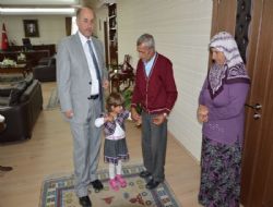 ARDAHAN (İHA) - Posof ilçesi Gümüşkavak köyünde kaybolduktan 2 gün sonra bulunan ve Ardahan Devlet Hastanesinde tedavi altına alınan Asiye Nur Dülger (4) taburcu oldu. Küçük Kız, Anne Ümmühan ile Baba Şeheddin Dülger ile birlikte taburcu olduktan sonra Vali Seyfettin Azizoğlu’na teşekkür amaçlı ziyaret etti.