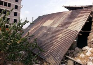 Aşkale İlçesinde etkili olan fırtına çatıları uçurdu.