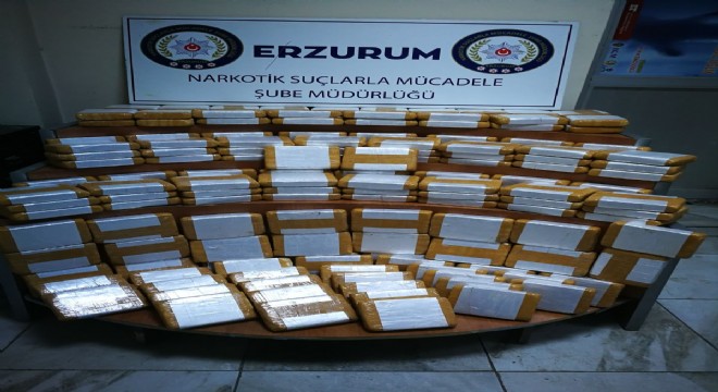 Erzurum'da durdurulan bir aracın taban kısmına zulalanmış 151 pakette 81 kilo 707 gram eroin ele geçirildi.