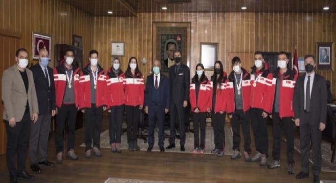 Norveç’te düzenlenen Avrupa Şampiyonası B Klasmanında şampiyon olarak A Klasmanına yükselerek Dünya Şampiyonası elemelerine katılmaya hak kazanan Erkek Curling Milli Takımı ile Avrupa Şampiyonası A Klasmanını 7. sırada tamamlayarak Dünya Şampiyonasına doğrudan gitme hakkı kazanan Kadın Curling Milli Takımı sporcuları Rektör Çomaklı’yı makamında ziyaret etti.