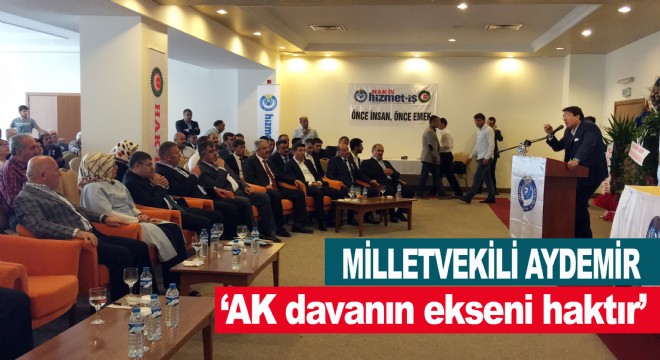 Daha sonra söz alan AK Parti Erzurum Milletvekili İbrahim Aydemir ise, bir sendikacıya ait olan “İçinde çalışma olmayan hayat suçtur” sözünden hareketle, çalışanların çok mübarek bir iş yaptıklarına vurgu yaparak, “sizler mübarek bir iş üzeresiniz. Bereket ifade eden, topluma katkı sunan değerli bir iş. Çalışan olmak, işçi sıfatını haiz bulunmak çok değerlidir. Çalışma hayatının her iki tarafını da tatmış birisi olarak şunu söyleyebilirim ki, karşılıklı hukukun gözetildiği zeminlerden fışkıran yegane kavram ilahi bereket oluyor. Aksi ise, negatif enerjinin bol kepçe dağıtıldığı, huzursuzluğun ayyuka çıktığı haller. “ değerlendirmesinde bulundu.
