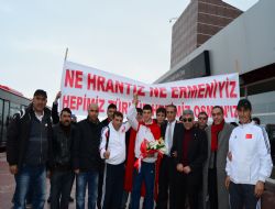 Genç Milli Boks Takımı Başantrenörü Cahit Himoğlu ve yardımcı Antrenör Ayhan Tunçkılıç yönetiminde Erzurum’a gelen Milli Boksör Osman Aydın, davul zurna ve çiçeklerle karşılandı. Karşılama törenine Gençlik Hizmetleri ve Spor İl Müdürlüğü Spor Şube Müdürü Bülent Tilkidöğen, Boks İl Temsilcisi Kadir Hayta, Tunçkılıçspor Kulübü Başkanı Sinan Tunçkılıç ve çok sayıda boks antrenörü, boksör ve dünya üçüncüsü Milli boksör Osman Aydın’ın ailesi ve yakınları katıldı. Davul zurna ve çiçeklerle karşılanan Milli boksör Osman Aydın için ilginç bir pankart asıldı. Ermenistan’da hakemlerin gazabına uğrayan ve altın madalyası gasp edilen Milli boksör Osman Aydın’a destek veren Boks Camiası “Ne Hirant Dinkiz, ne Ermeniyiz, hepimiz Osmanız” diye bir pankart açtı.