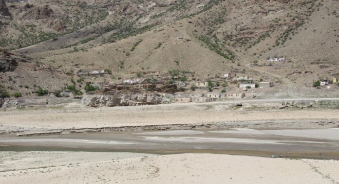 Erzurum'daki Ayvalı Barajı'nda su seviyesi son yılların en düşük seviyesini gördü. Doluluk oranının yüzde 66,28'e gerilediği baraj gölünde su altında kalan evler ve karayolu gün yüzüne çıktı.