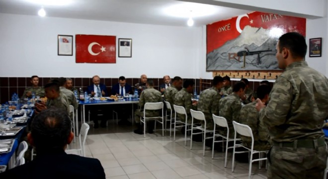 Karavanadan askerlerle birlikte iftar açan Vali Azizoğlu, “Çok kutsal bir görev yapıyorsunuz. Sizi canı gönülden kutluyorum. Umarım kısa zamanda tezkerenizi alır, ailelerinize kavuşursunuz.” dedi.