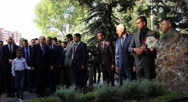 MHP Genel Başkanı Devlet Bahçeli, geleneğini bozmayarak beraberinde MHP Genel Başkan Yardımcısı Mevlüt Karakaya, bir partilinin oğlu ve partililerle beraber bayram namazı sonrası MHP'nin kurucusu merhum Alpaslan Türkeş'in kabrini ziyaret etmek için Beşevler'e geldi. Bahçeli, partililerle bayramlaştıktan sonra kabri ziyaret etti. Okunan Kur'an-ı Kerim'in ardından kabre kırmızı ve beyaz karanfiller bırakan Bahçeli, çiçekleri suladıktan sonra dua etti. Bahçeli, ziyaret sonrasında kabrin arka kısmında bulunan yerleşimde partililerle birlikte çay içti.