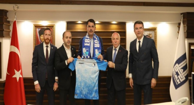Başkan Sekmen günün anısına Bakan Kurum’a adı yazılı Büyükşehir Belediye Erzurumspor’un mavi beyaz formasını hediye etti. Çevre, Şehircilik ve İklim Değişikliği Bakanı Murat Kurum’un Büyükşehir Belediyesi’ne yaptığı ziyaret hatıra fotoğrafının çekimiyle sona erdi.