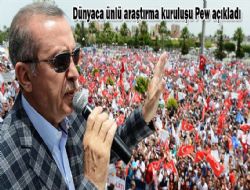 Başbakan'a halkın desteği arttı Dünyaca ünlü araştırma kuruluşu Pew’in yeni araştırmasında, Başbakan Erdoğan’a olan ’halk desteği’nin arttığı ortaya çıktı.Pew’in 26 bölgede 18 yaş üstü vatandaşlarla yüz yüze yaptığı araştırmaya göre, 2012 baharında Başbakan Recep Tayyip Erdoğan’a halk desteği yüzde 59 iken, 2013 baharında bu rakam yüzde 62’ye yükseldi. Erdoğan’dan hiç memnun olmayanların oranı sadece yüzde 16’da kalırken, zaman zaman memnun olmadığını beyan edenler yüzde 18 oldu. Ankete katılanların yüzde 4’ü ise fikir beyan etmedi.Aynı araştırmadan, günde 5 vakit namaz kılan insanların yüzde 75’inin, sadece cuma namazı kılan insanların yüzde 66’sının, nadiren namaz kılanlarınsa yüzde 36’sının Erdoğan’a destek verdiği sonucu çıktı.